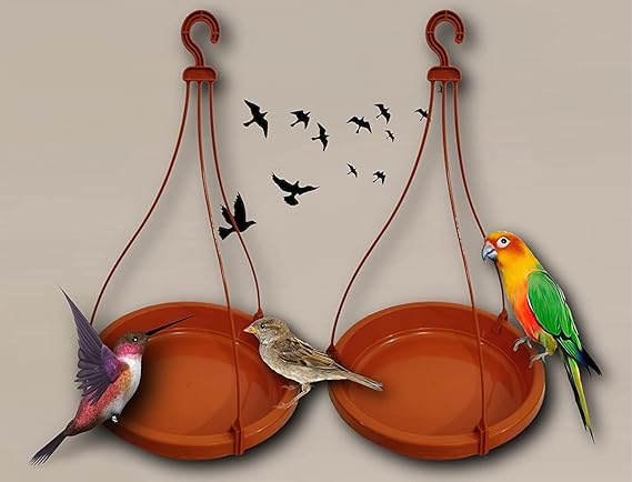 Bird Feeder Bowl, Birds Water Feeding Bowl with Hanging Hook, Bath tub for Cage and Garden Birds. (25×5 Cm)