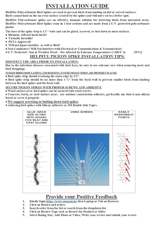 BirdFlee Polycarbonate Bird Spikes 5pcs. Set