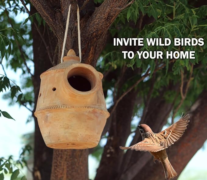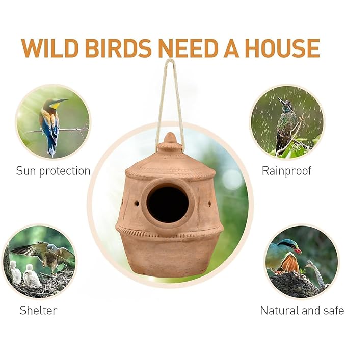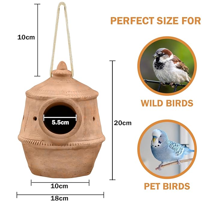 NATURAL MATERIALS: Made entirely from terracotta clay , this bird nest provides a safe and comfortable home for birds while being eco-friendly.