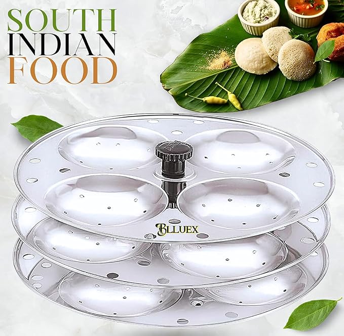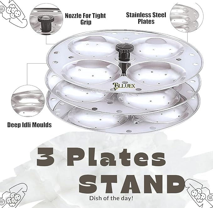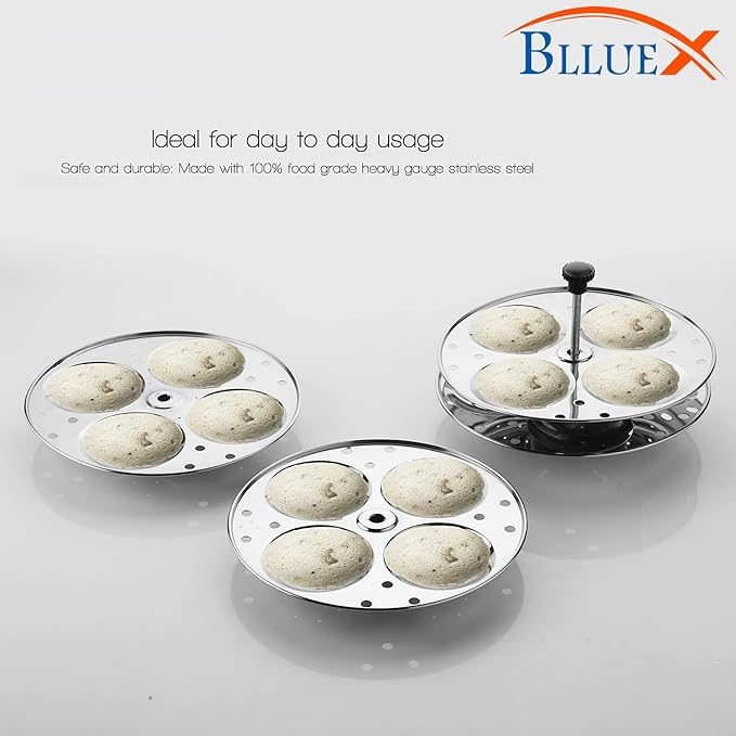 BLLUEX Premium Stainless steel 3 Ring idli maker | 3 Plates, 12 Cavity idlis Steamer | Idly stand for kitchen fit’s in 5 Liter Outer Lid cooker