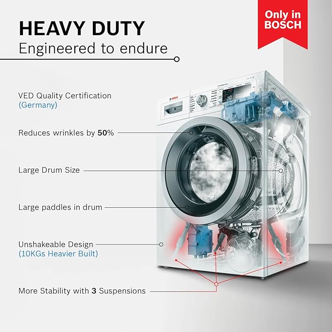 Bosch 7 kg 5 Star Fully-Automatic Front Loading Washing Machine (WAJ20069IN, Silver, AI active water plus, In-Built Heater, BLDC inverter Motor, Steam)
