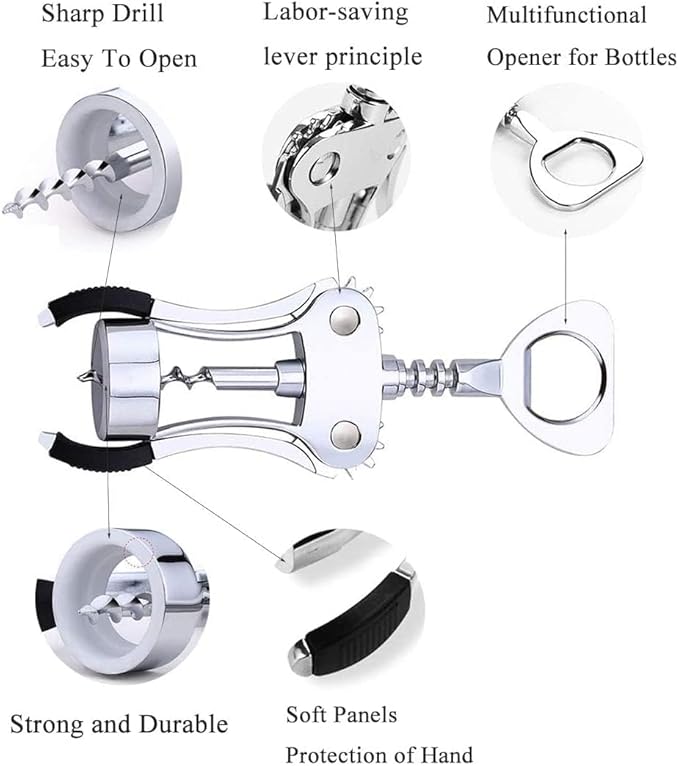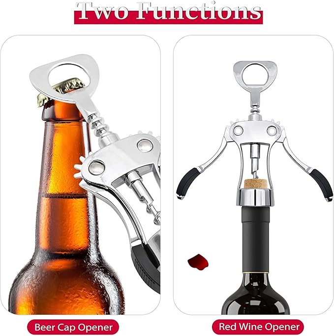 Bridge2shopping Wing Corkscrew Wine Opener Professional Multifunctional All-in-One Wine Bottle Opener and Beer Bottle Opener. Strong Stainless Steel Zinc Alloy