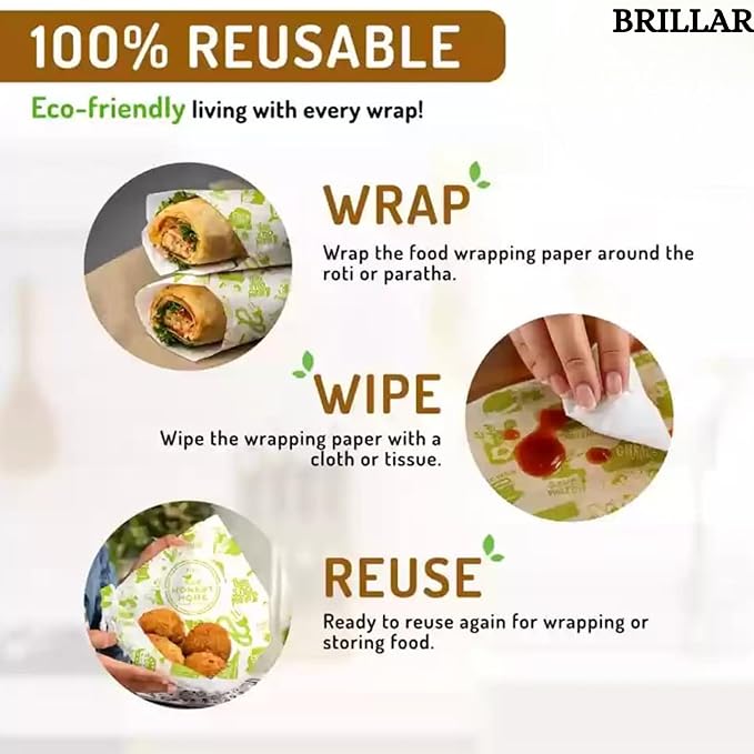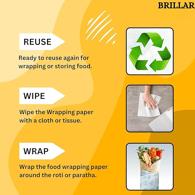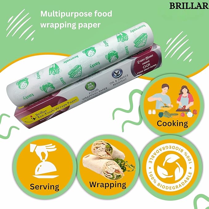 BRILLAR Paper Roll for Kitchen Food Wrap 1kg – Premium Non-Stick Butter Wrapping Paper | Used for Roti Wrapping | Parchment Paper for Kitchen Food Wrap & Oil Absorption (1 kg/100mtr)