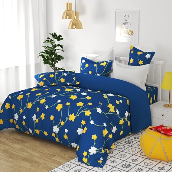 BSB HOME 100% Microfiber bedsheet for Double Bed with 2 Pillow Covers Breathable | Wrinklefree and Softtouch Floral Print Sheet- White Yellow & Blue