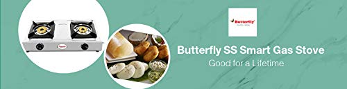 Butterfly Smart 2 Burner Stainless Steel Gas Stove | Manual Ignition | Brass Burners | Skid-proof Legs | 1 Year Manufacturer’s Warranty | Grey