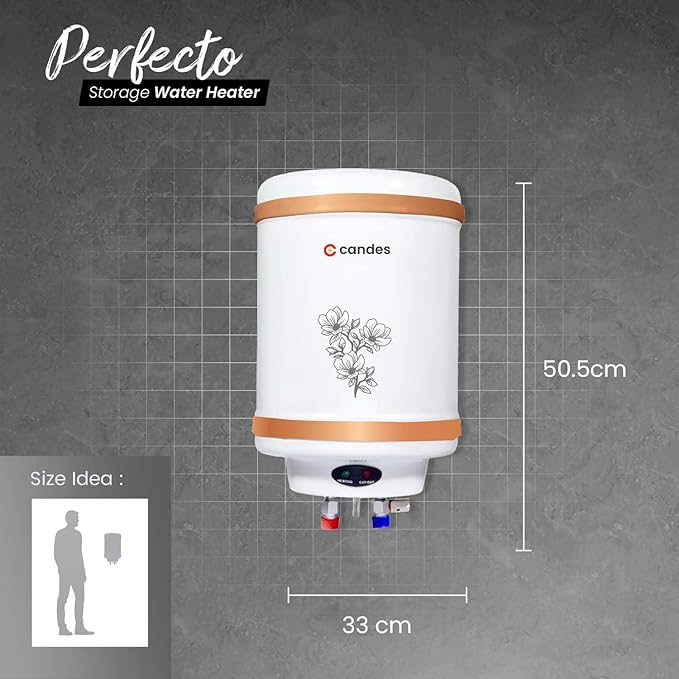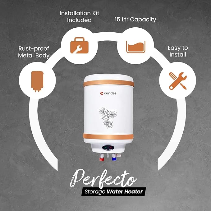 Candes 15 Litre Storage Water Heater For Home, 5 Star Rated Automatic Storage Water Heater, 2KW- Perfecto (White, Copper Bronze)