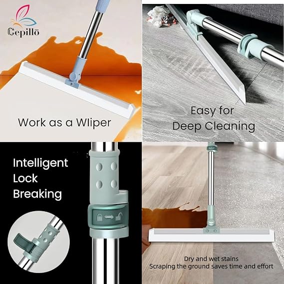 CEPILLO Multifunctional Magic Broom Sweeper | Detachable Indoor Cleaning Broom | Silicone Floor Squeegee Broom with Extended Handle | 180-Degree Rotatable Wiper (2 in 1)