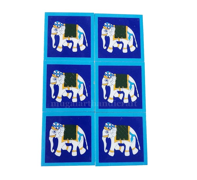 Ceramic Tile with Decorative Elephant Design, Set of 6, Blue and White