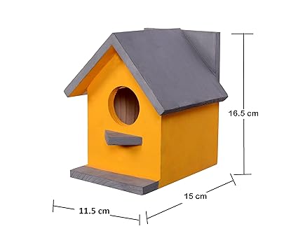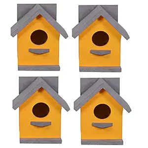 Cket Bird House for Balcony and Garden Hanging for Sparrow, Hummingbird, Kingfisher Bird Nest for Balcony Made with Water Resistant Wooden with Hanging and Wall Patch (Wooden-Yellow) (Pack of 4)