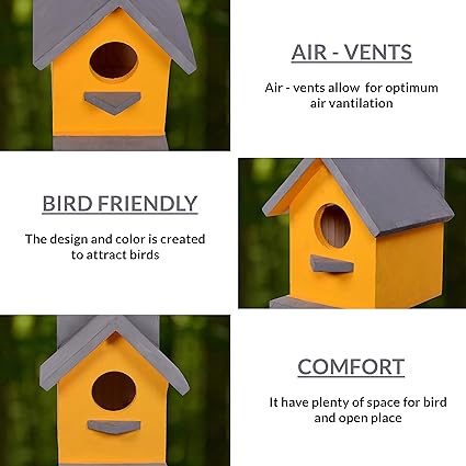 This wooden birdhouse offers your bird friends a cozy home. This unique design birdhouse is the perfect addition to any home or garden of your choice.