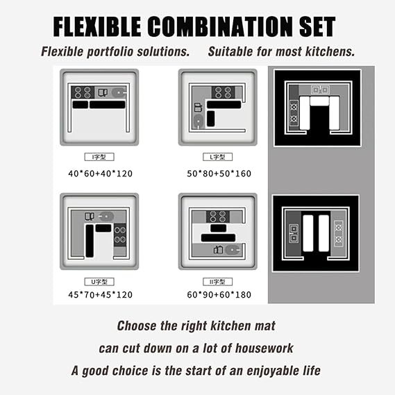 【Perfect Size And Material】 This set contains 2 rectangular Cushioning anti-fatigue kitchen mats (40×60 + 40×120 cm), L-shaped kitchen rug kit, perfect for the kitchen. The stain-resistant kitchen mat is made of Rubber + technical velvet material that is soft to the touch, and the 0.3″ thick kitchen floor mat provides more cushioning and stability. Our anti-fatigue pads are safer, more comfortable, and work your feet with ease