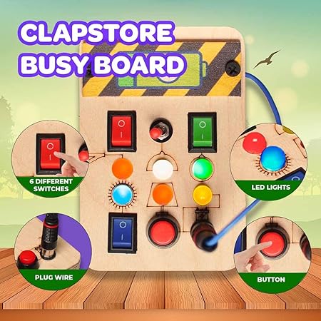 Clapstore Toys Busy Board V1.5 with LED Light, Sensory Toys for Toddlers, Kids, Montessori Toys with Toggle Switch, Travel Toys for Educational Toddler Activities for 1-6 Y Old Boys & Girls, Beige