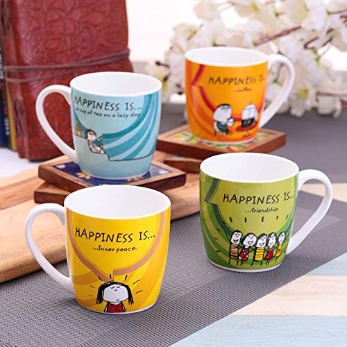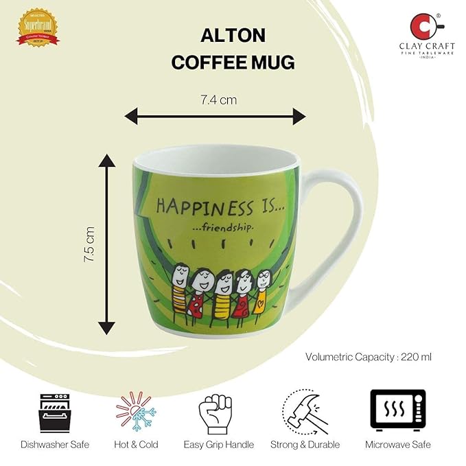 Clay Craft Fine Ceramic Happineess Is Coffee Mugs – Set of 4, Multicolour, 220ml