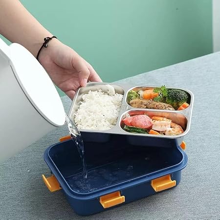 Lunch Box Steel 3 Container: This lunch box will keep your food, sandwiches, soups, beverages fresh for lunch, So You Can Pack Your Kids’ Lunches in the Morning, And It Will Stay Warm until Lunchtime.