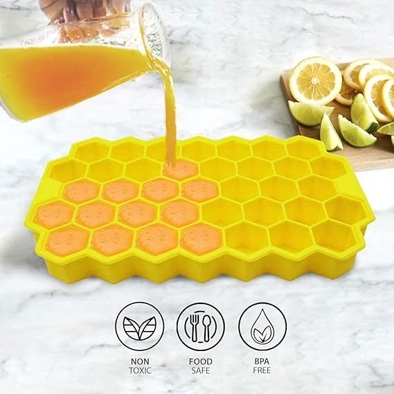 Clazkit Flexible Silicone Honeycomb 37 Cavity Ice Cube Tray for Freezer Moulds Small Cubes Whiskey Fridge Bar Soft Ice Cube Tray -Pack of 1