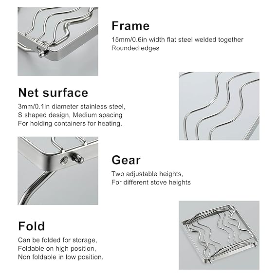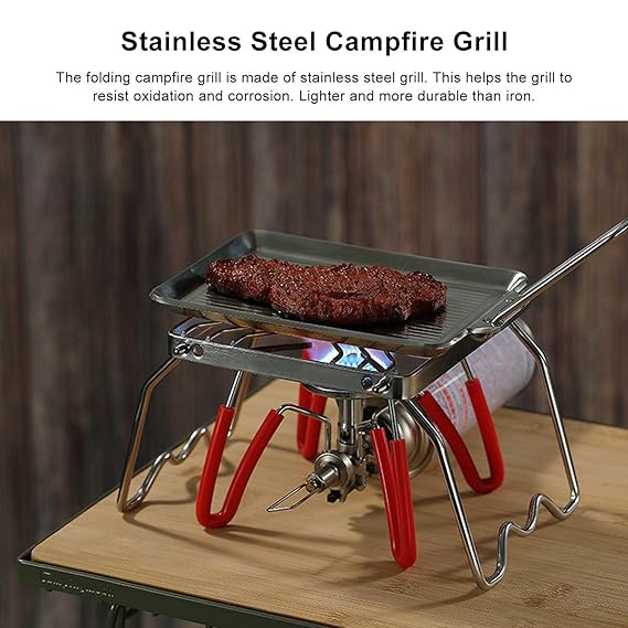 PREMIUM MATERIAL: The folding campfire grill is made of stainless steel grill. This helps the grill to resist oxidation and corrosion. Lighter and more durable than iron.