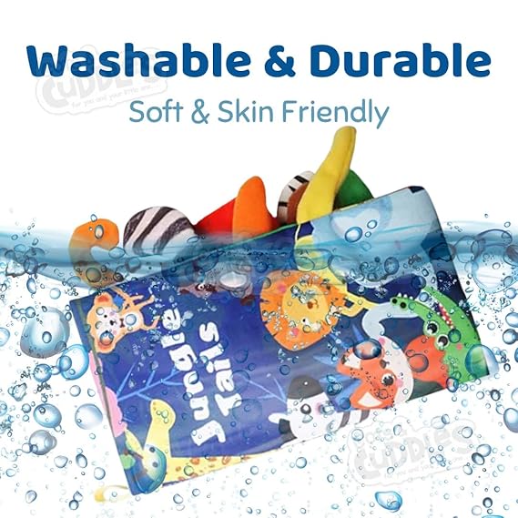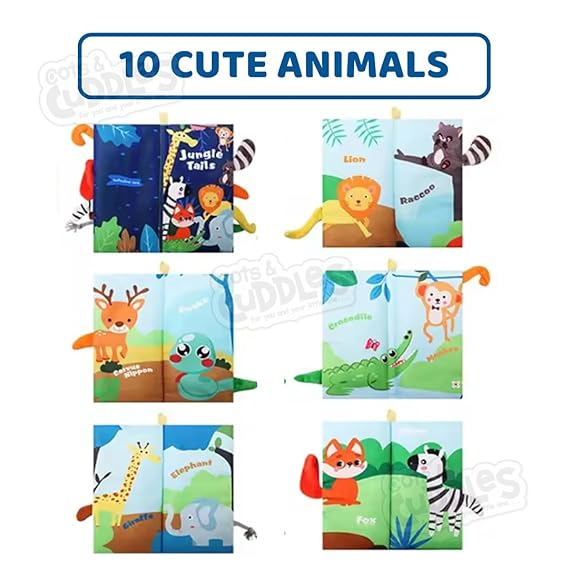 Cots and Cuddles Animal Theme Soft Fabric Cloth Book Interactive Touch and Feel Sensory Learning with Crinkly Pages and Sound Book for Toddlers (1pc) (Jungle)