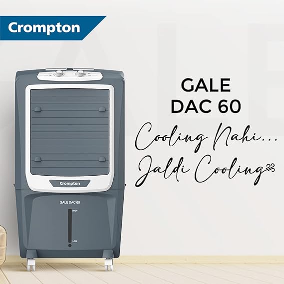 Product: Crompton Gale DAC60 Desert Air Coolerwith water tank capacity (upto brim) of 60 L; Suitable for 470 sq. ft. room size