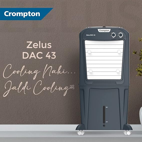 Crompton Zelus DAC Desert Air Cooler- 43L, with Everlast Pump, 4-Way Air Deflection and Honeycomb pads, Grey, (ACGC-ZELUSDAC43)