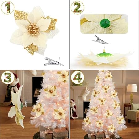 Multi-Purpose Holiday Décor – These versatile flowers can be used for various Christmas decorating ideas: on your Christmas tree, wreaths, table centerpieces, mantels, staircases, or even as bouquet accessories for festive occasions.
