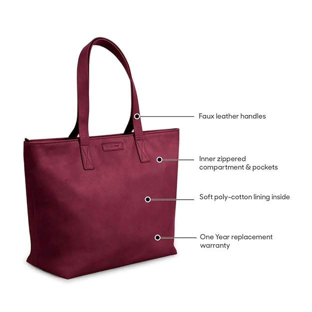 DailyObjects Women’s Latest Tote Bag | Spacious, Stylish, Sturdy Vegan Leather Handbag with Zip closure and Laptop Compatibility | Handcrafted Ladies Shoulder Purse For Daily & Office Use Burgundy