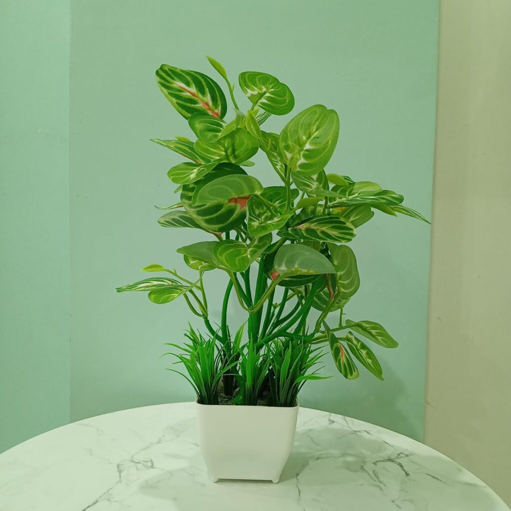 Artificial Wild Plants leaf Green Pink & All Colours Study Table Plant Pot Included and Greenery Bonsai artificial plants