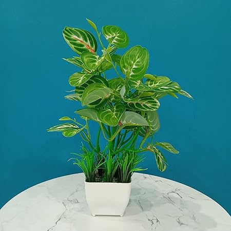 It comes with aesthetic leaves which are carefully plastered to look real; Pot Color: White