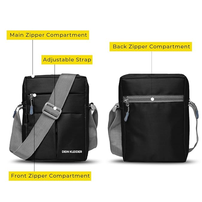 WATER, DIRT & SLASH RESISTANT: This cross body bag by Dein Kleider is ideal for people who are adventurous and always on the go. Its padded storage is resistant to water, dirt and even a slash by sharp objects, so you dont have to worry about anything. This bag is durable and heavy duty, ensuring that your gadgets and valuables are safely stored.