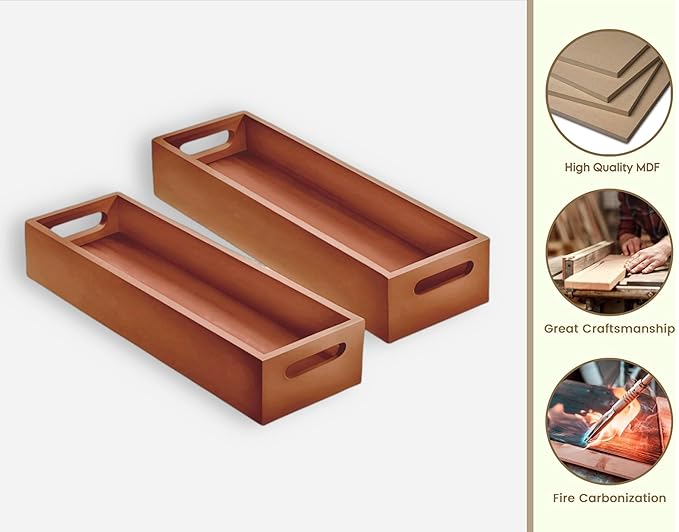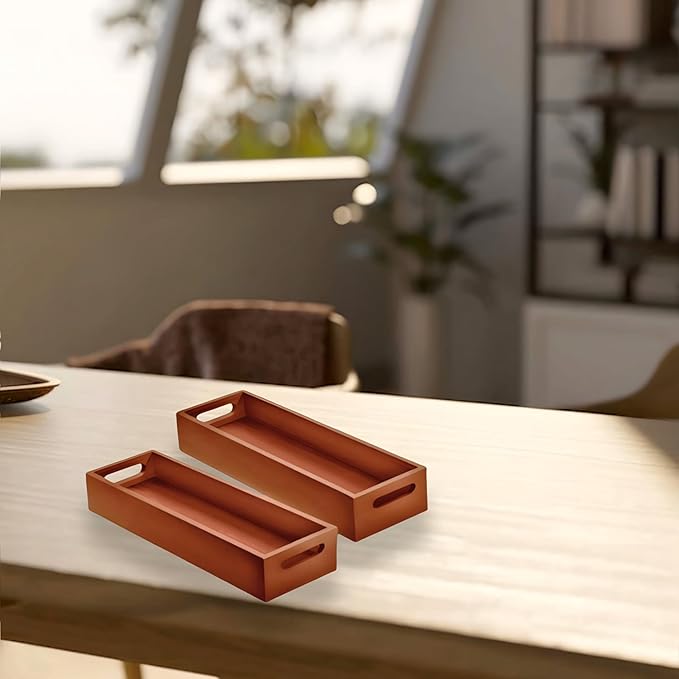 Dime Store Wooden Serving Tray Platter Multipurpose Tray | Serving Tray for Breakfast, Tea Serving, Tray for Storage, Table Decor Kitchen Decor (Set of 2, Natural)