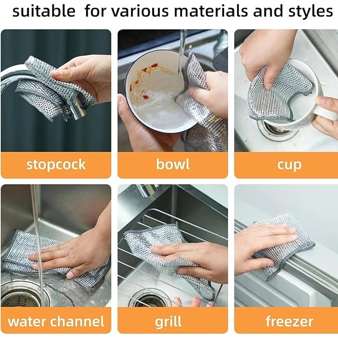 Dishwasher Rag (Pack of 10) Multipurpose Wire Dishwashing Rags for Wet and Dry Cleaning Steel Cloth Scrubber for Utensils & Kitchen Cleaning, Dish Wash Vessel Cleaning Wool Wire Dishwashing Rags