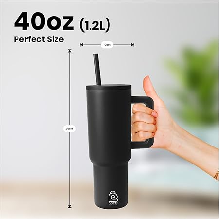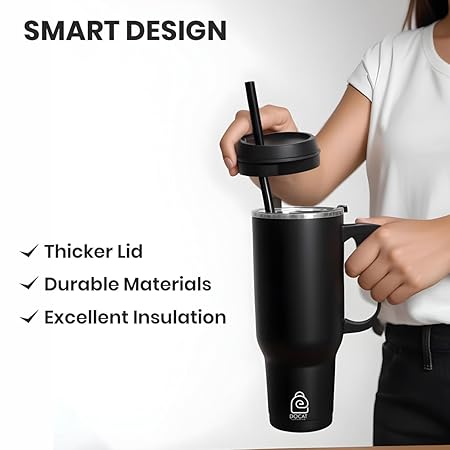 Ergonomic Design: The 40 oz tumbler with lid and straw features an ergonomic, comfortable grip handle. The wide and thick handle provides relaxation by reducing pressure on your knuckles.