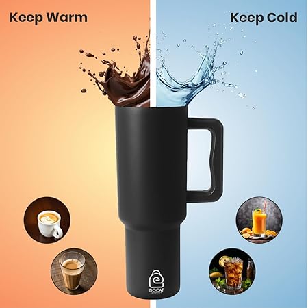 DOCAT 1200ML Stainless Steel Tumbler with Lid and Straw, Hot and Cold Double Insulated Sipper Mug, 100% Leak Proof Coffee Tumbler Cupholder for Office, Gym, Travelling (Midnight Black)