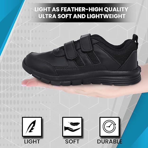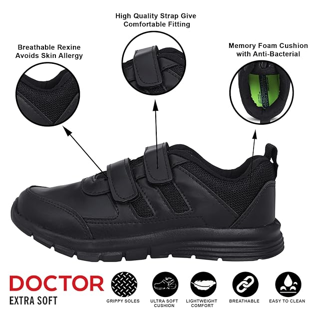 DOCTOR EXTRA SOFT Lightweight EVA Gola Unisex-Child/Kids/Adults Black & White School Uniform Shoe with Memory Foam Cushion & Adjustable Hook Loop| Formal,Casual,Running|Comfortable & Anti-Skid D-3005