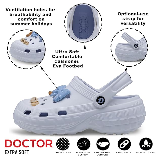 DOCTOR EXTRA SOFT Women’s Ultrasoft Charms Clogs/Sandals with Adjustable Back Strap for Adult| Comfortable & Light Weight | Stylish & Anti-Skid |Waterproof & Everyday Use Mules for Girls/Ladies D-522