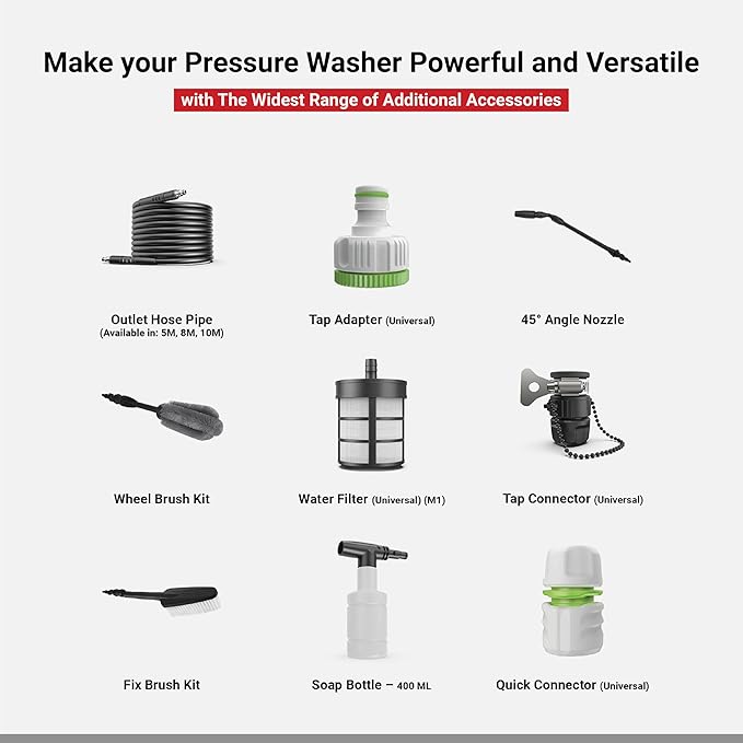 Power-Packed Performance: Dylect Ultra Clean Plus Pressure Washers are engineered for superior performance, boasting a robust 1800 Watts Motor with a resilient 12-blade copper winding design.
