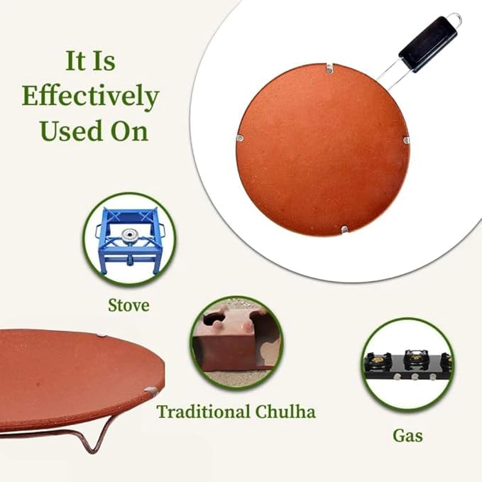 Handcrafted Tawa: Meticulously crafted from natural clay, our Mitti Ka Tawa ensures even heat distribution.