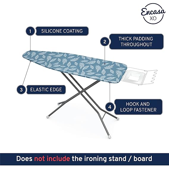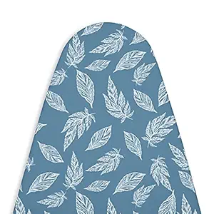Encasa XO Ironing Board Cover with 3mm Thick Felt Pad for Steam Press (Fits Standard Medium Boards of 112×34 cm) Heat Reflective, Scorch & Stain Resistant, Printed – Big Leaves Blue