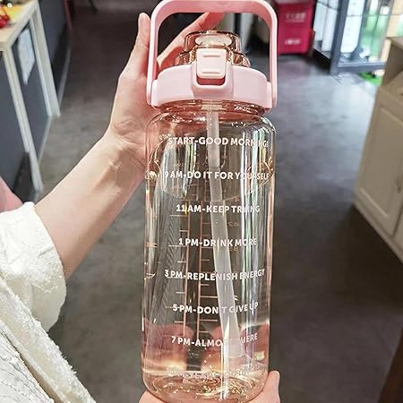 eumqestoer 2 L Capacity Belt Straw Transparent Motivational Water Bottles|Time Marker Leak Proof&Break-Proof|Best Usage For Office/School/Gym/Travel Bottle|Bpa-Free Fitness Sports Bottle (PINK)