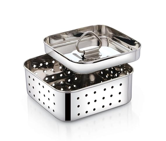 Expresso Stainless Steel Square Shape Indian Paneer/Tofu Press Mould Maker (250 Ml),Size-10.4X10.4X4 Centimeters,Silver