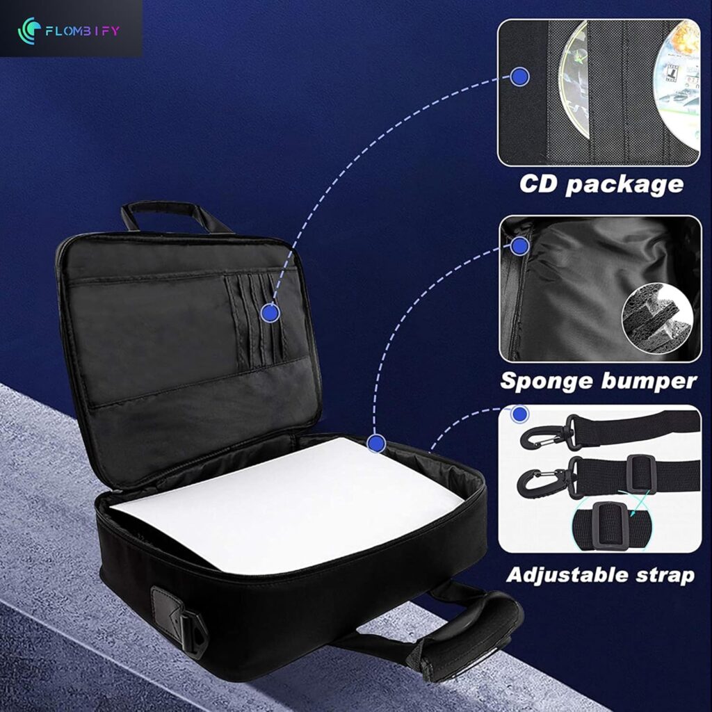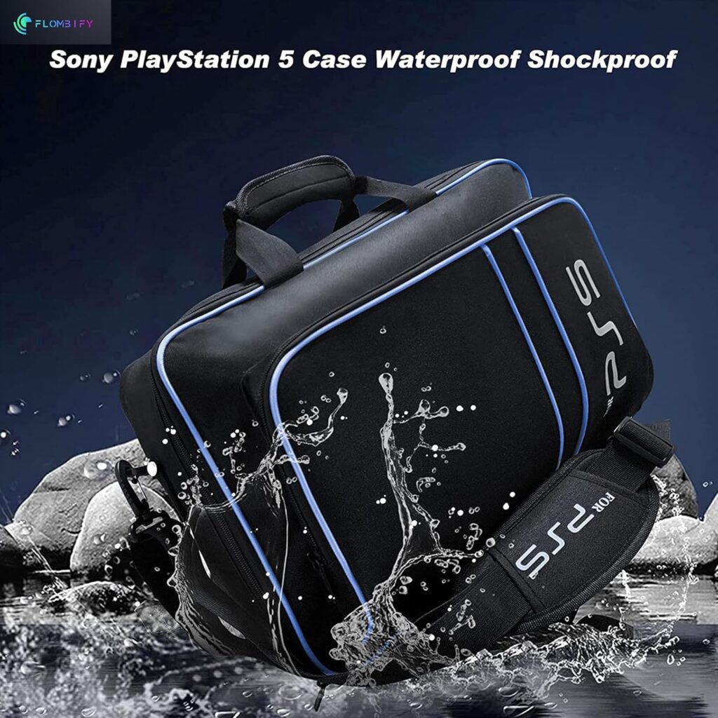 FLOMBIFY PS5 durable case is designed to safeguard your PS5 console (both Disc and Digital Editions)other accessories,Black Blue.Shockproof for PS5Bag Travel Carry Case Holding for PS5Slim/PS5Console