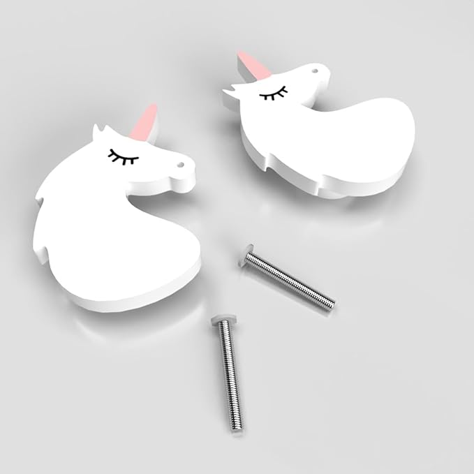 FLY FROG Unicorn-Themed MDF Wood Knobs for Kids’ Rooms, Wardrobes, Doors, and Cabinets – Set of 2 Drawer Handles (Unicorn)