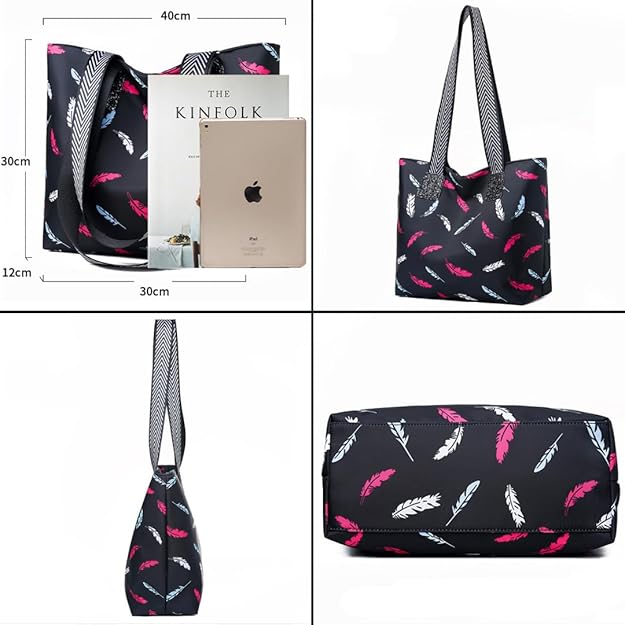 【EXQUISITE WORKMANSHIP】: Nylon waterproof Stylish Tote bag suitable for – Shopping , college, Work, Travel, Beach. Size – 40(L) x 12(W) x 30(H) cm. Weight – 295g.