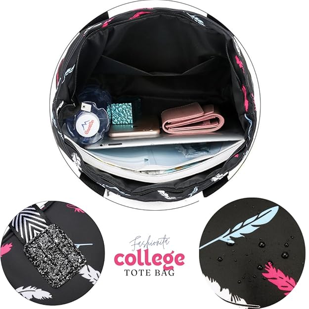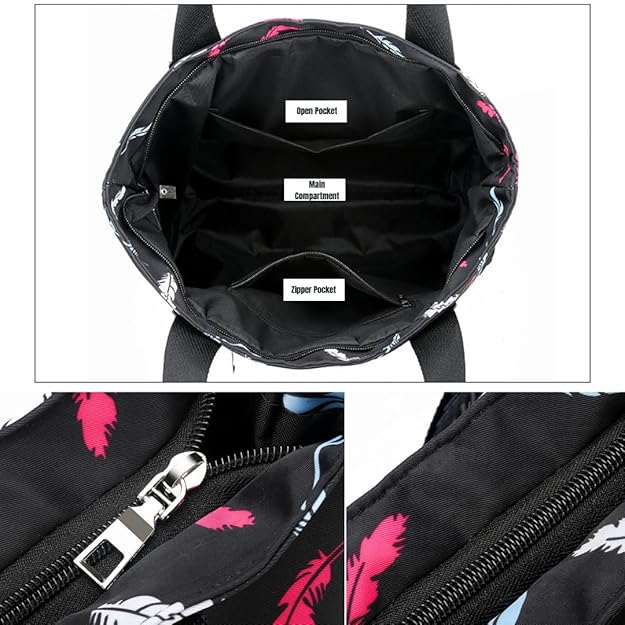 FLYMANN Women Tote Bag Nylon Waterproof | Zipper closure stylish handbag for College, Shopping & Daily Use