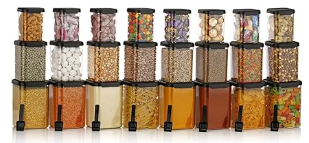 flymore Plastic 1400Ml Airtight Containers Set For Kitchen Storage And Containers Box For Pantry Organization And Container For Kitchen Storage,Set of 24-(350ml+650ml+950ml+1400 ml)