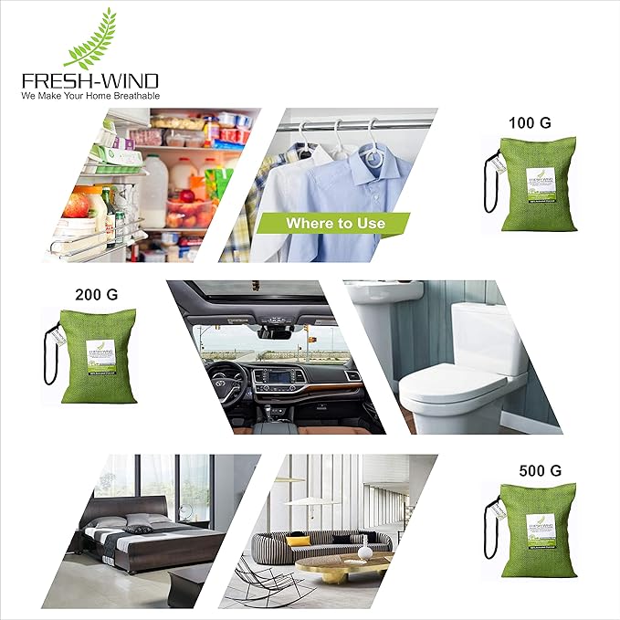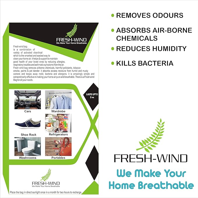 Freshwind 100gm Non-Electric 100% Activated Charcoal Air Purifier, Deodorizer, Odor Absorber and Dehumidifier for Wardrobe, Fridge, Shoe Rack, Cars and Home