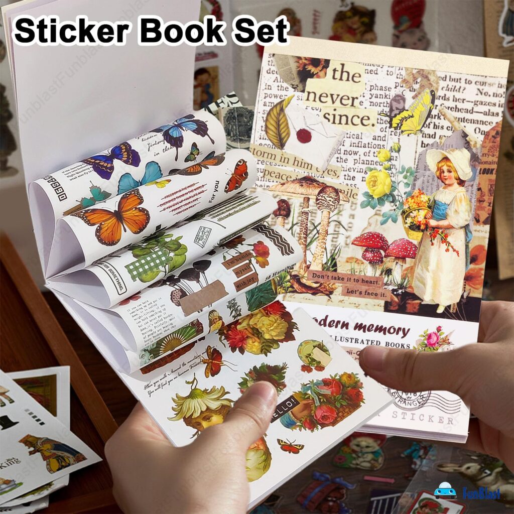 FunBlast Sticker Book Set – 20 Sheets/240+ Paper Stickers, Classical Aesthetic Booklet, Retro Decorative Stickers for Scrapbook, Stickers for Project, Japanese Style Stickers, Journals, Scrapbooking