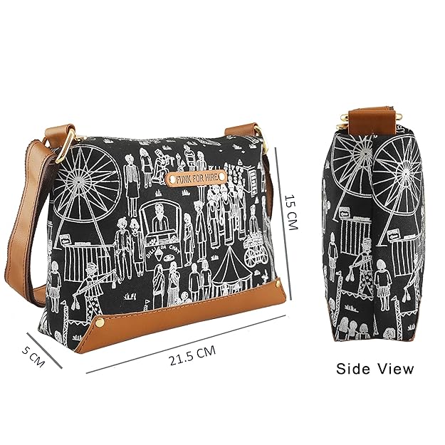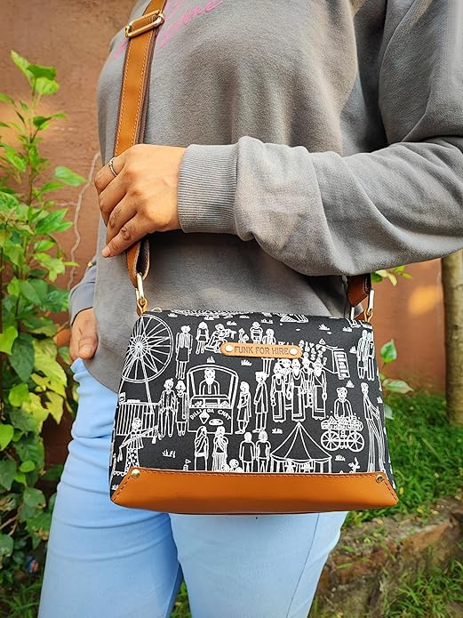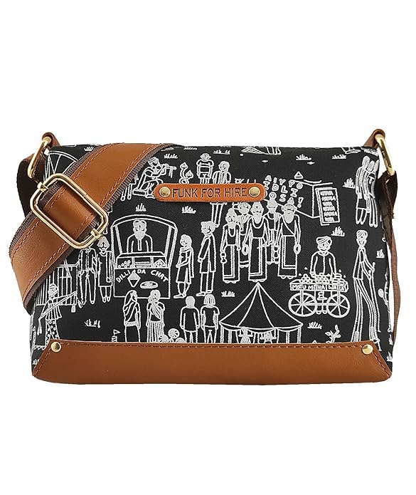 Funk For Hire Women Printed Canvas box Sling Crossbody bag