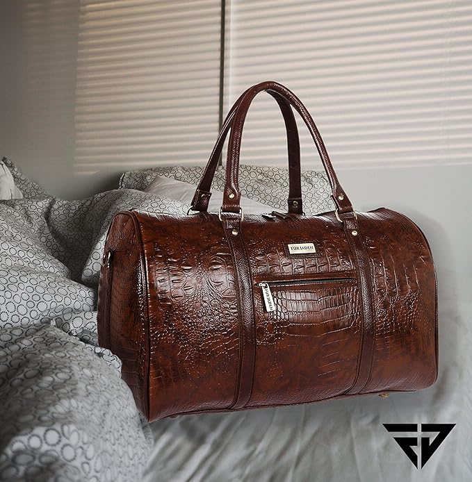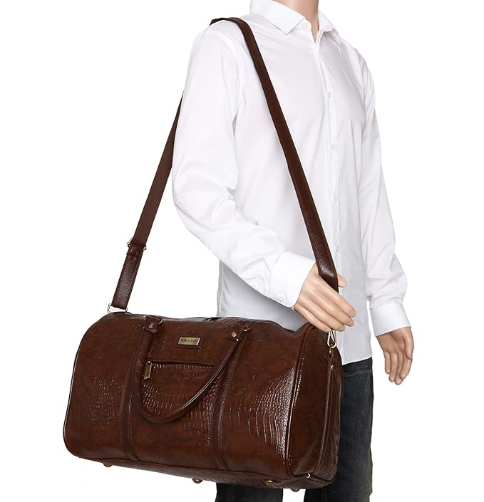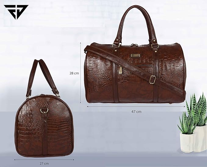 Fur Jaden Brown Textured Leatherette Stylish & Spacious Weekender Duffle Bag for Travel for Men and Women