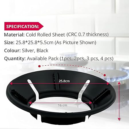 [INDIAN GAS/STOVE DESIGN]: Revolutionize Your Cooking Experience! Our Gas Saver Burner Stand boasts a sleek round shape, perfectly tailored for most gas stoves in India. It functions as a powerful flame shield, skillfully gathering the fire for unparalleled energy efficiency. For optimal performance, select the energy-saving cover based on the number of stove legs (4 legs supported; others compatible with Indian gas). Embrace the future of energy-saving with this Gas Energy Saver Stand!