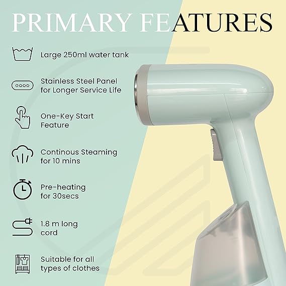 Goodscity Garment Steamer for Clothes, Steam Iron Press, 250 ml Water tank, Vertical & Horizontal Steaming up to 22g/min, 1200 Watt & 30 sec Fast Heating (GC 111), 12 month Warranty
